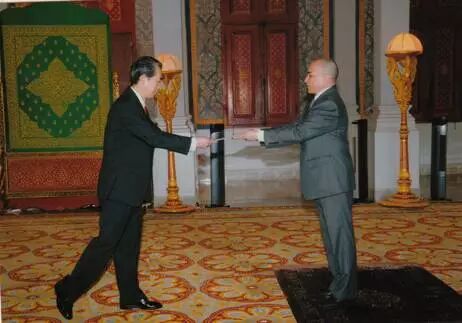 中国新任驻柬大使熊波向柬埔寨国王西哈莫尼递交国书