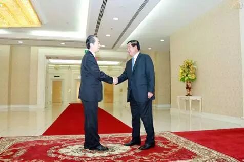 2016年9月29日,中国驻柬埔寨大使熊波前往柬埔寨总理府和平大厦拜会洪森总理。
